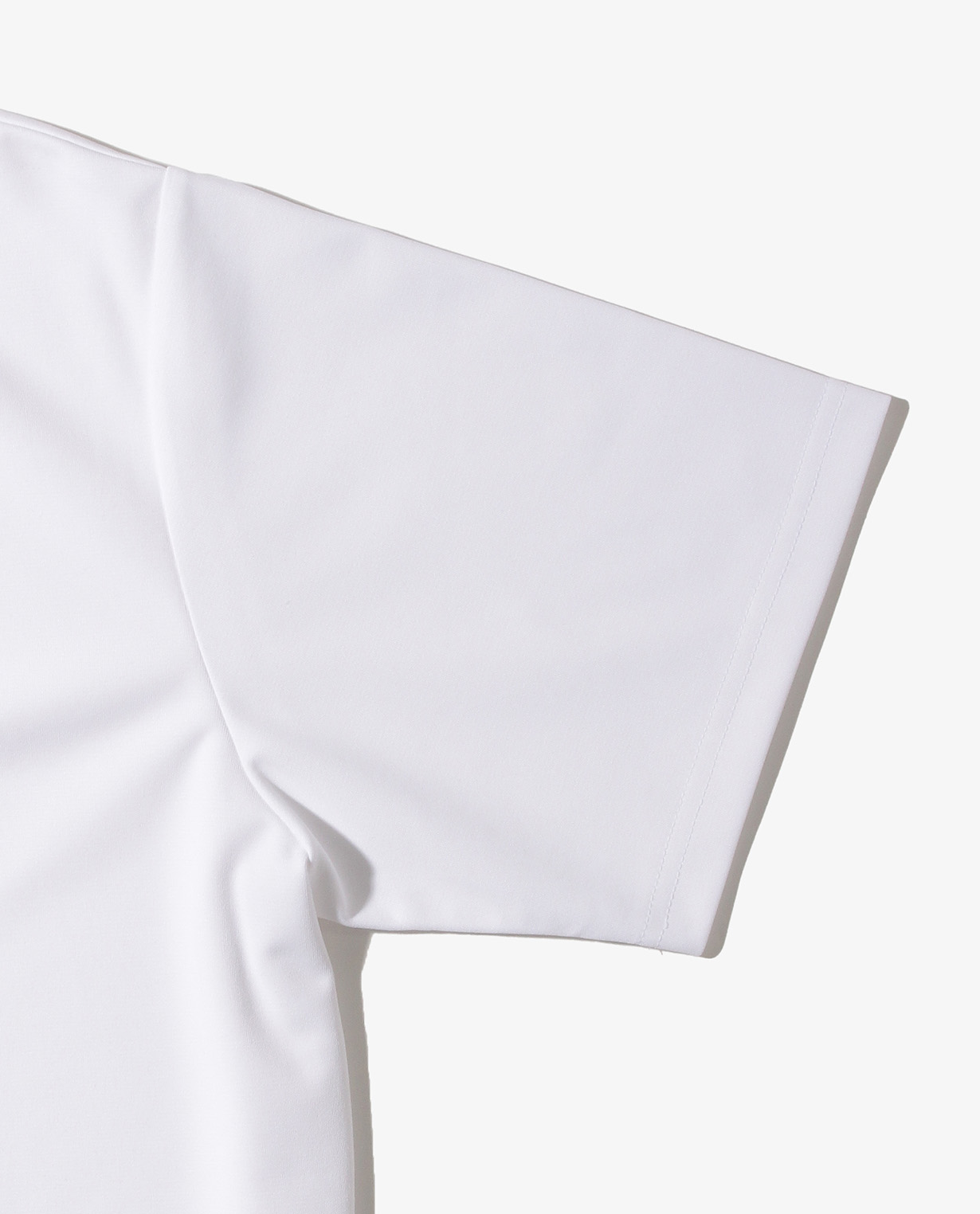 Tシャツでは珍しく、首回りの衿は前と後ろを比較した時に、後ろの衿が通常に比べて2倍ほど高くなっています。衿腰が高く立体的なことにより、上着を羽織った際にアウターの衿が肌に直接触れにくくなり、アタリや生地汚れといったストレスを軽減させます。