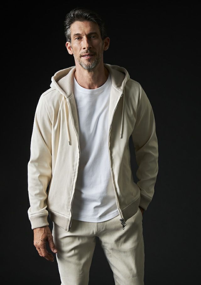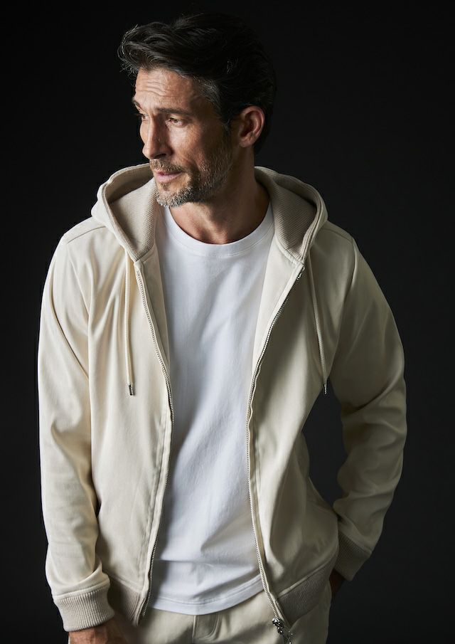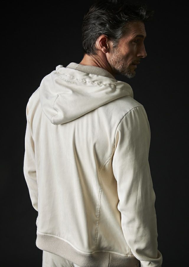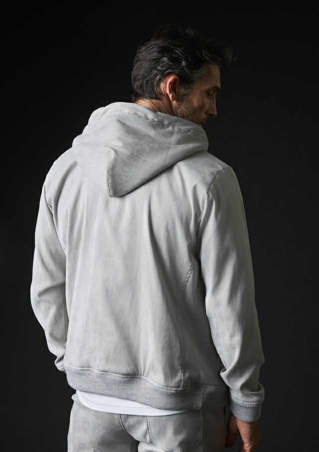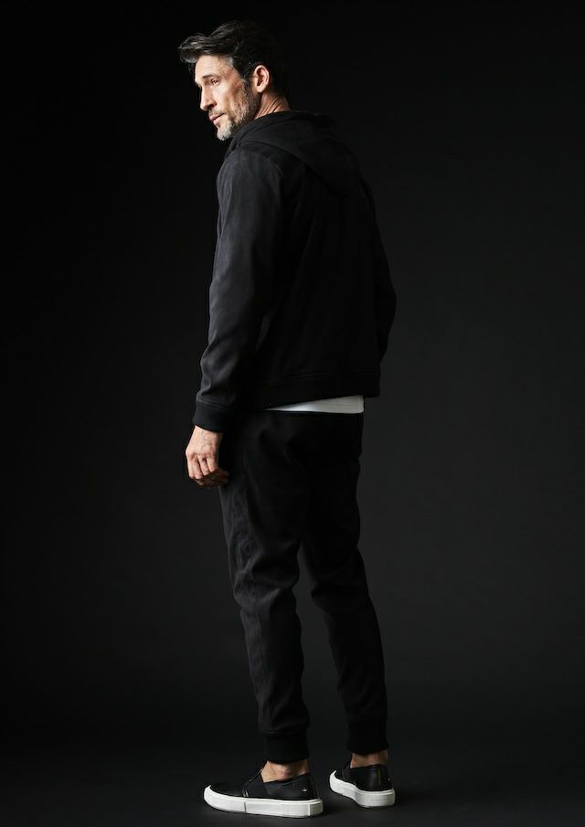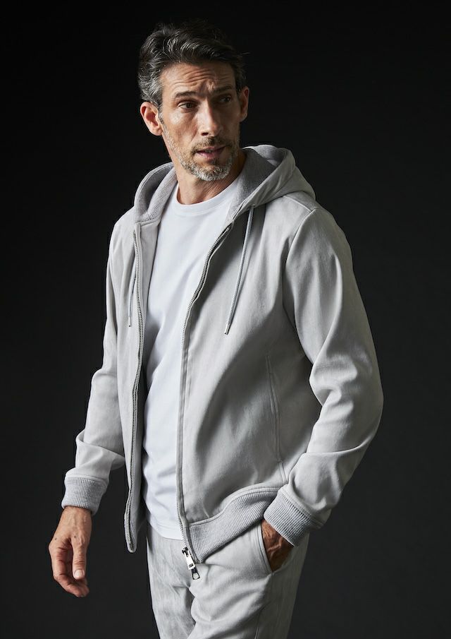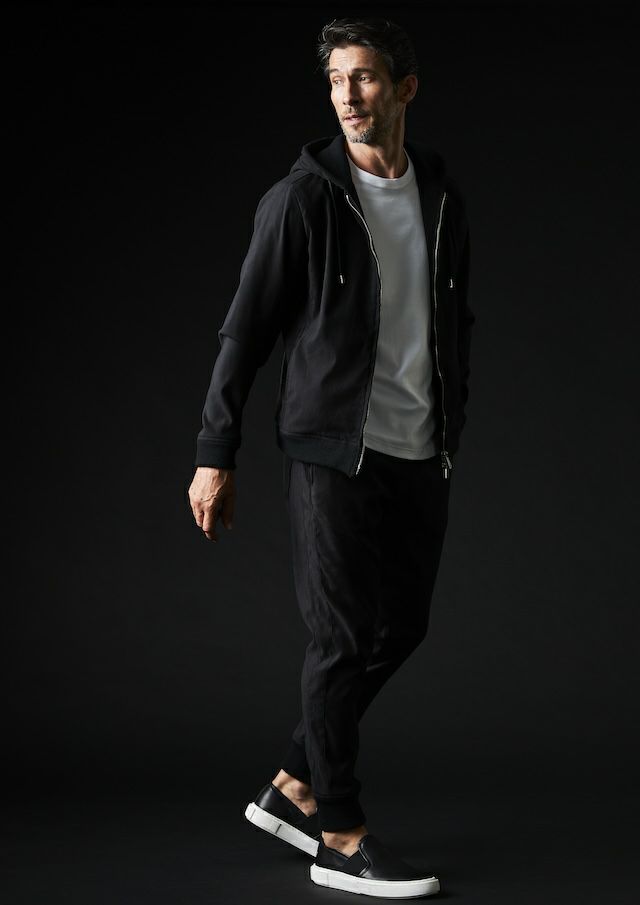 洗練された存在感と心地よさを、同時に叶える。今回登場するのは、極上のストレッチスエードを贅沢に使用したパーカー&リブパンツのセットアップ。タテ糸にはマイクロファイバーUTS、ヨコ糸には伸縮性に優れたT400を組み合わせ、さらに高収縮糸を掛け合わせた二重組織に。まるで上質な豚革を思わせる重厚な風合いと想像を超えるソフトなタッチが同居する唯一無二の素材感は、着た瞬間に“違い”を実感できるはず。さらに特筆すべきはリブ部分。希少なカシミヤをミックスすることで、肌に吸い付くような柔らかさと上品な温もりをプラス。細部に至るまでこだわり抜かれたデザインは、ディテール好きの大人をも唸らせます。そして仕上げに、ファスナーにはイタリア・ラッカーニ社の誇る「スーパーラッカーニファスナー」を採用。メゾン御用達のその輝きは、シンプルなセットアップを一気にラグジュアリーへと格上げします。ラフに羽織っても、リラックスして着こなしてもどこか都会的でモードな香りを漂わせる。まさに“大人の余裕”を体現する、珠玉のセットアップです。