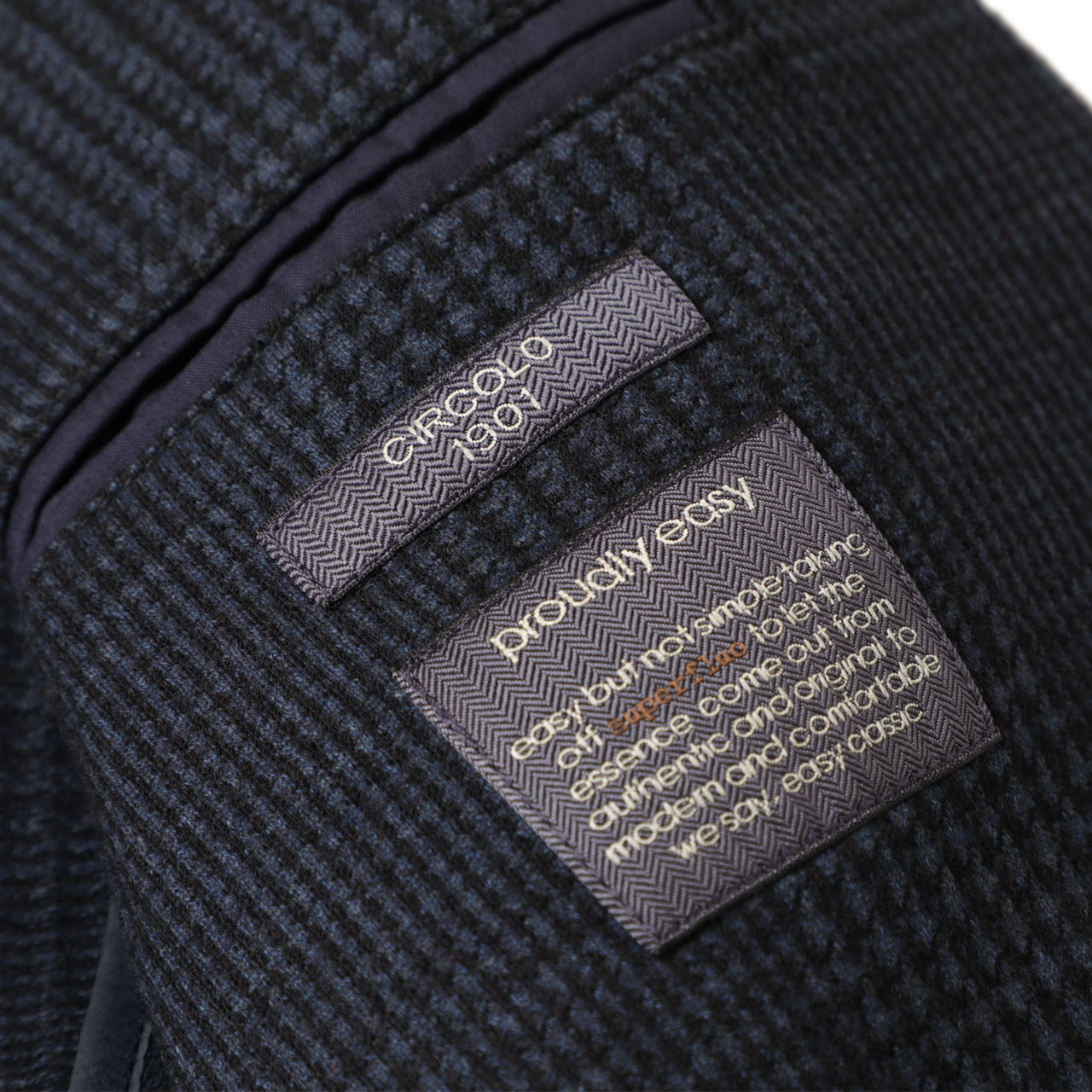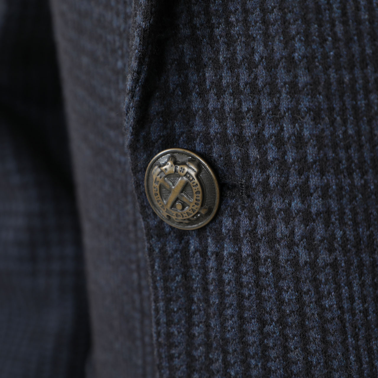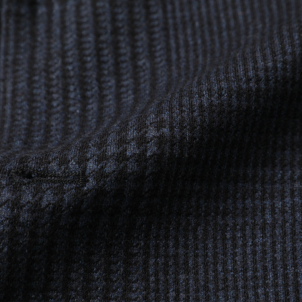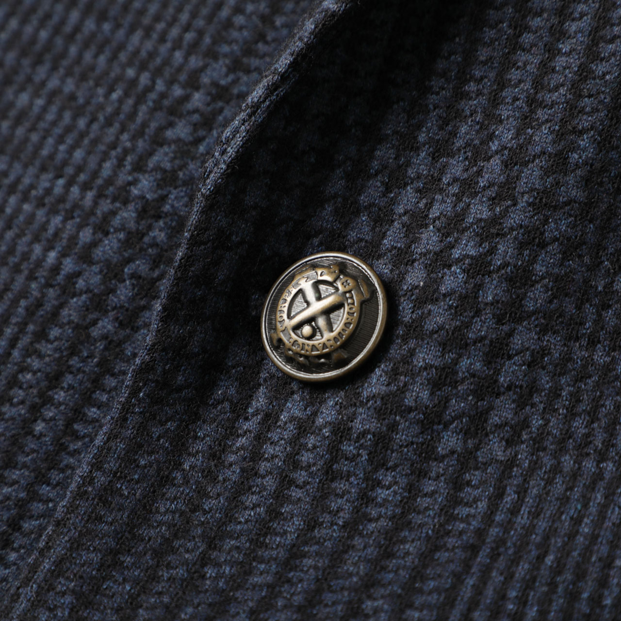 ブルー×ブラックのカラーでの織りになるためパッと見た印象はネイビーになり、柄の割には非常に使いやすいベーシックな一着となってくれそうです。
