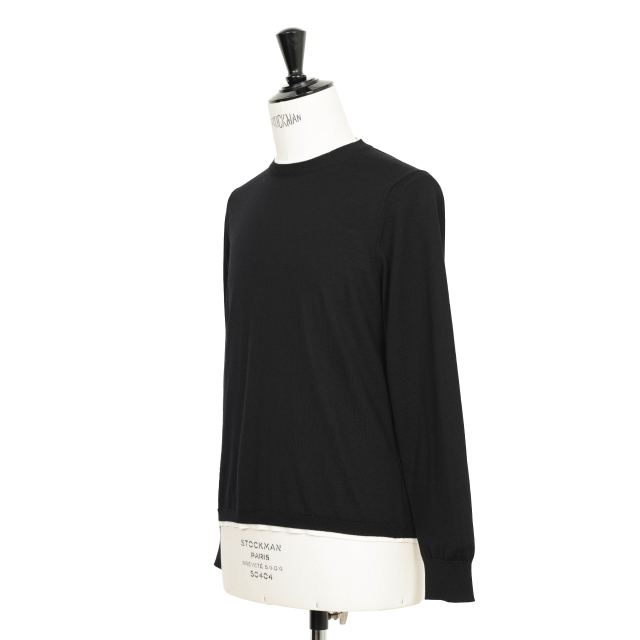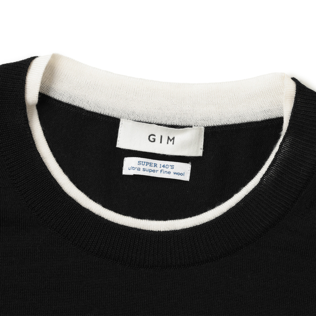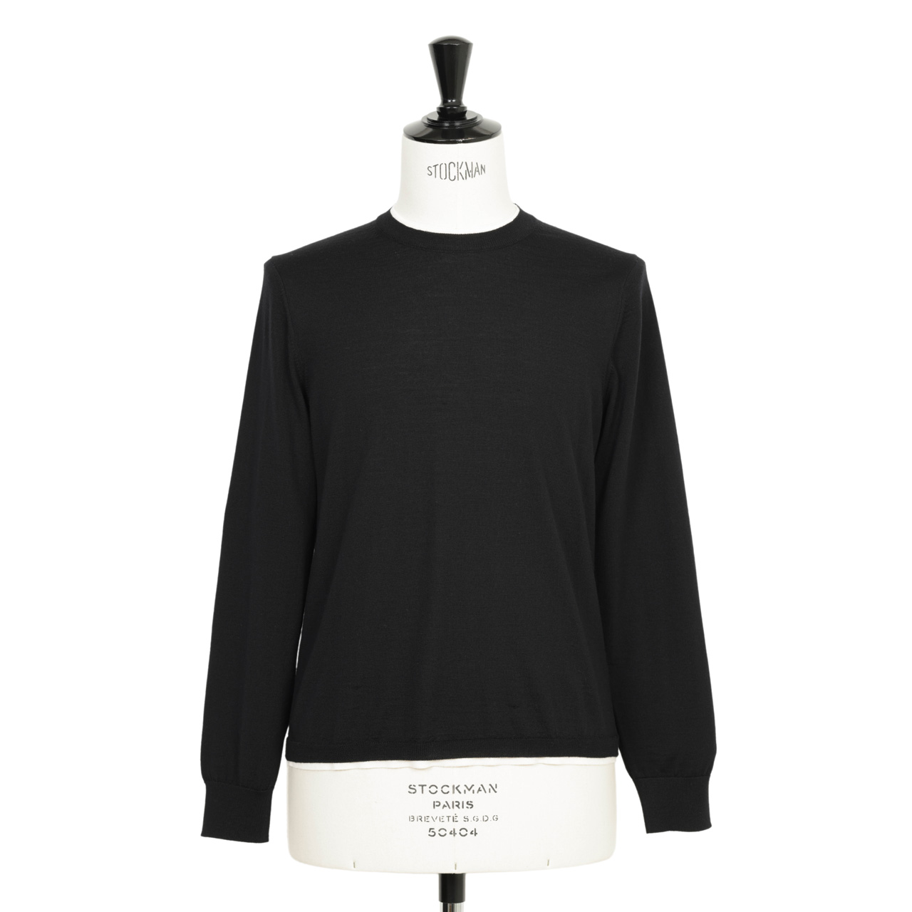 【菅原靴店別注】 gim ジム ニット ハイゲージ クルーネック ウルトラスーパーファイン Super 140's レイヤード風 25504519 005 ブラック