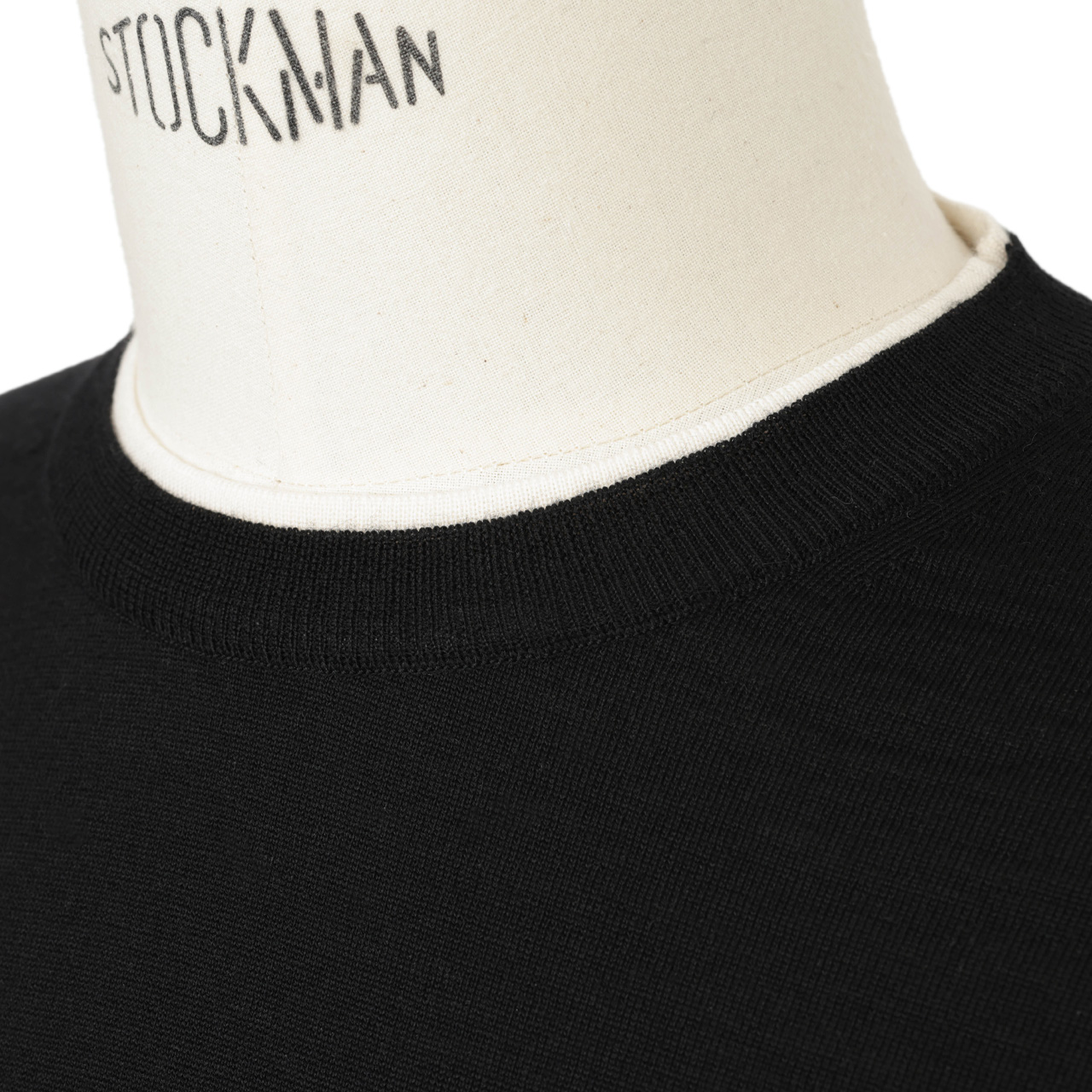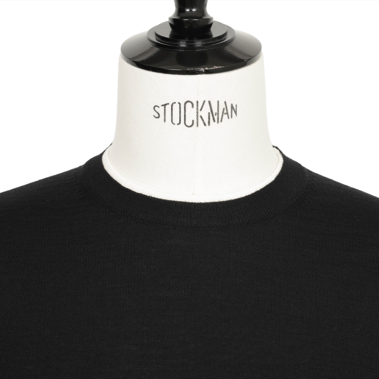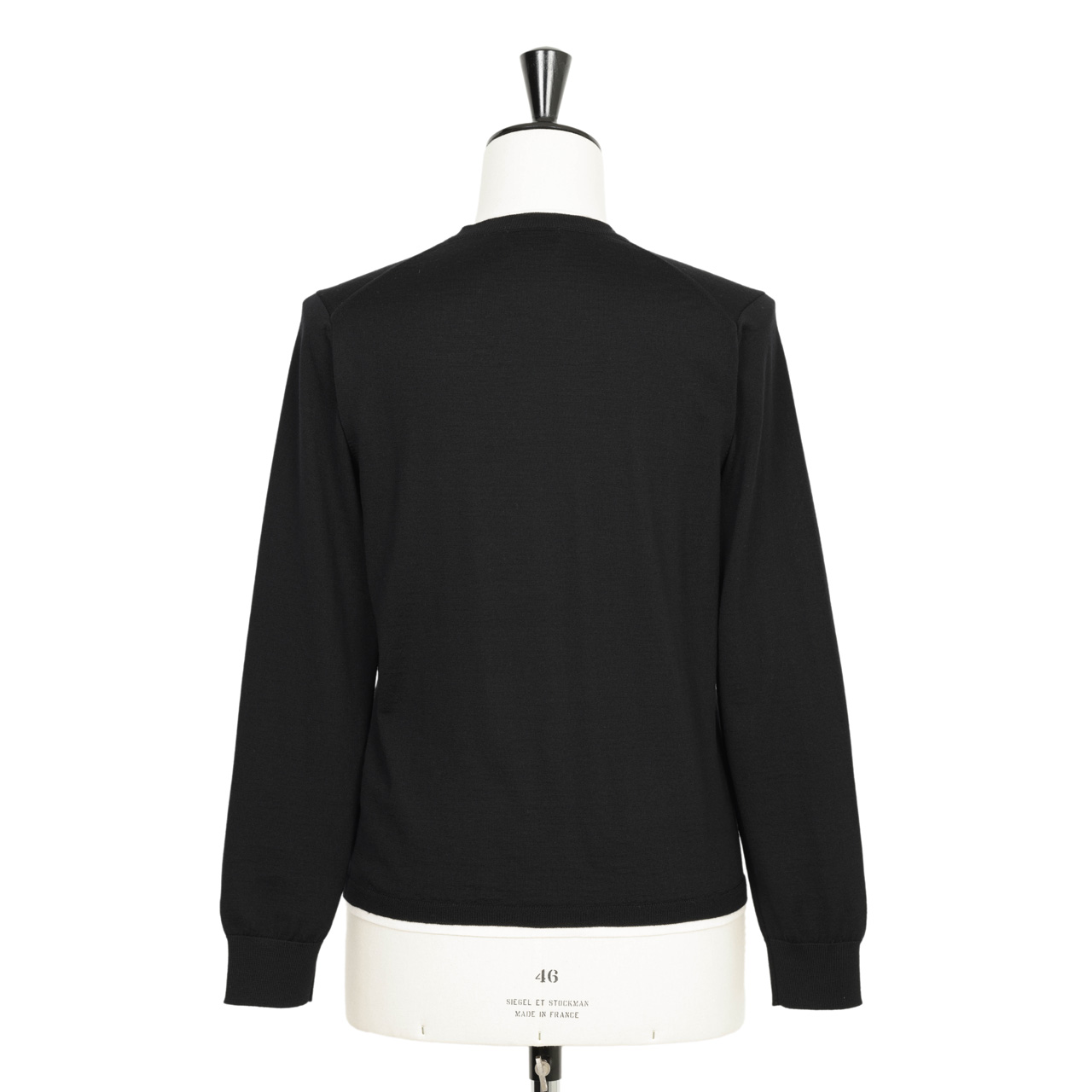 【菅原靴店別注】 gim ジム ニット ハイゲージ クルーネック ウルトラスーパーファイン Super 140's レイヤード風 25504519 005 ブラック