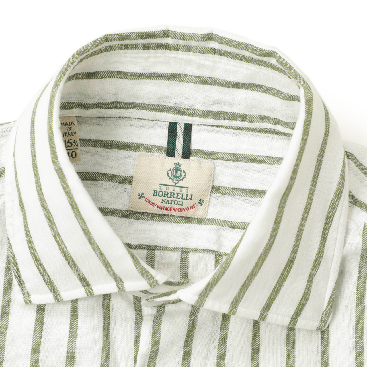 ルイジボレッリ / ストライプ リネン コットン セミワイドカラー シャツ / LUCIANO / SR1659 / グリーン