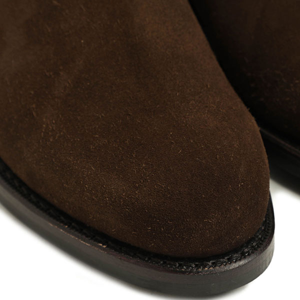 アッパーにはスエードを使用。カーフに比べて馴染みが早く、防水スプレーを併用するとレザーよりも撥水性が高まるため雨や雪などの悪天候時にも重宝する一足。