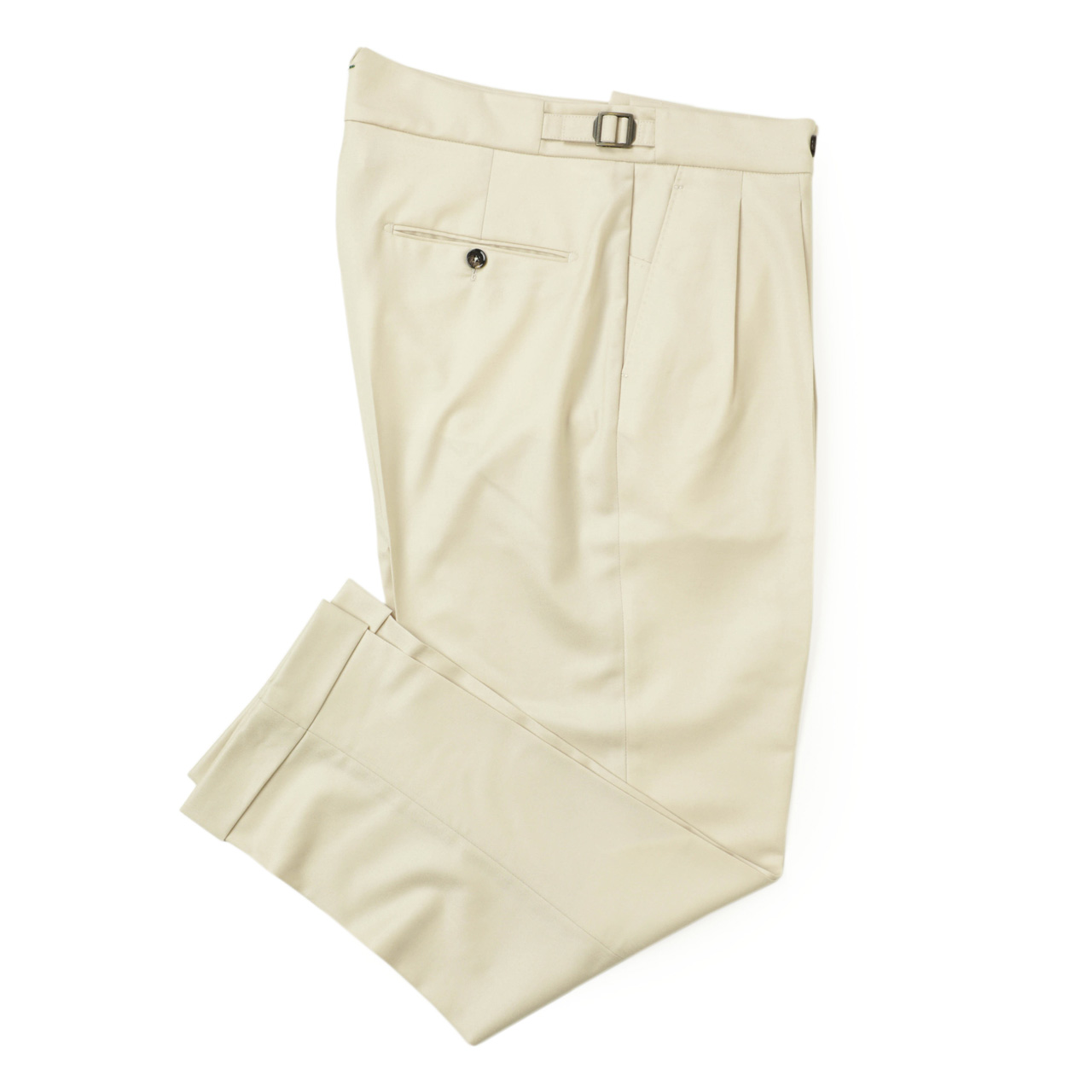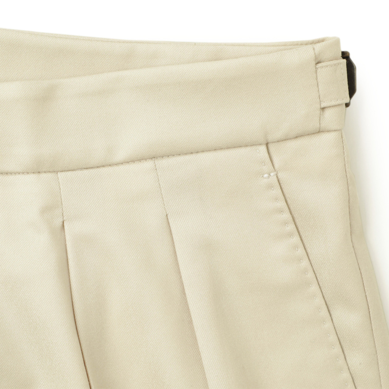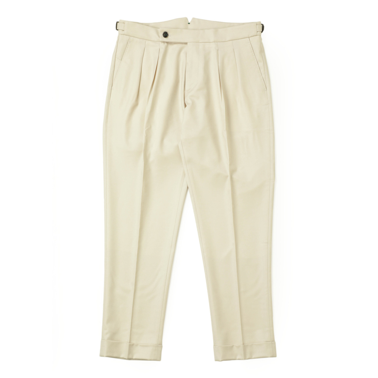 ベルウィッチ / SCOTCH スコッチ ワイド テーパード ベルトレス ツープリーツ ウール カノニコ サイドアジャスター パンツ/VB8996 CHALK