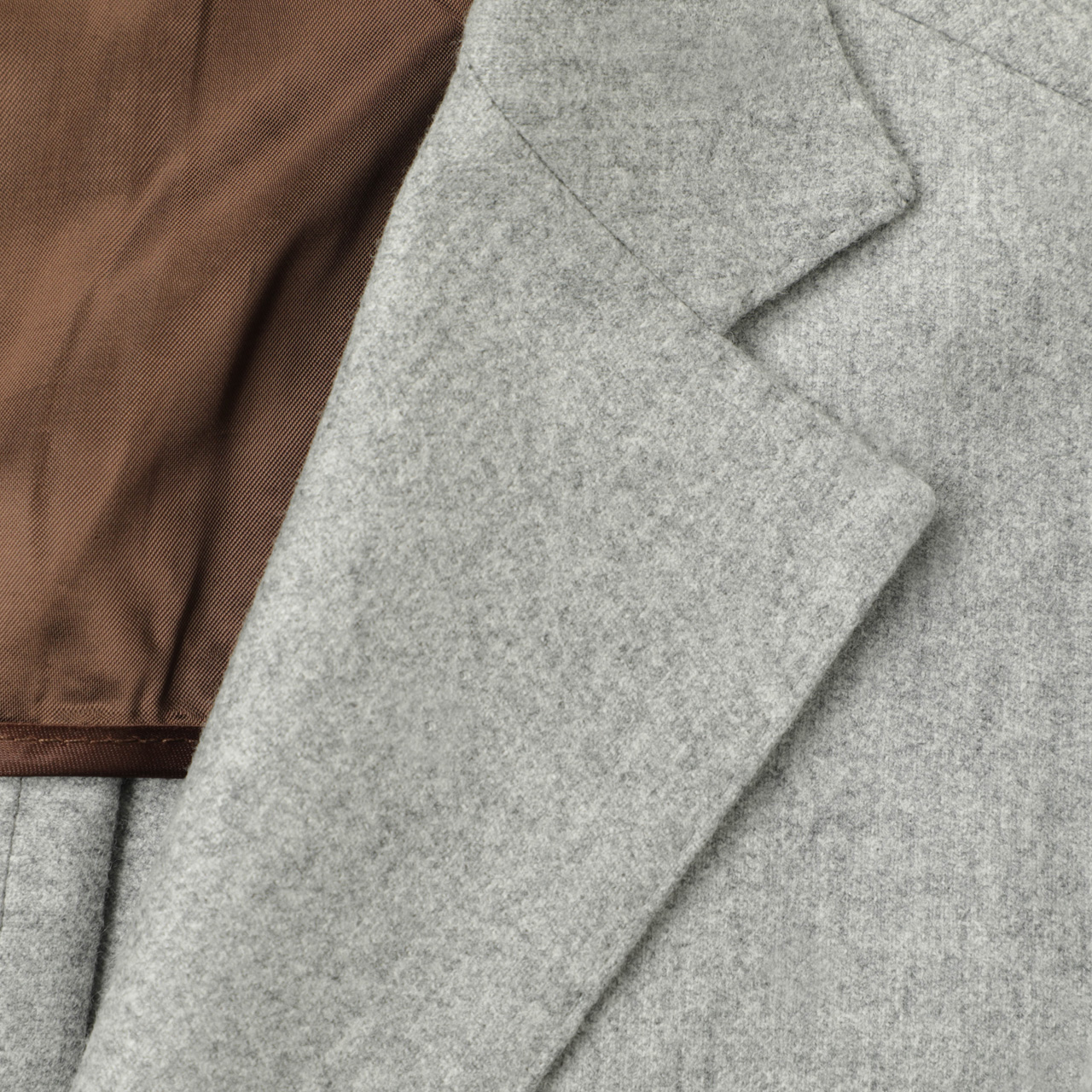 滑らかでコシの感じられる上質なフランネル地は着る方をエレガントに魅せてくれます。様々なトーンのグレーを組み合わせたメランジ調のグレーカラーはドレッシーにもカジュアルダウンしても使いやすさを感じていただけるはず。