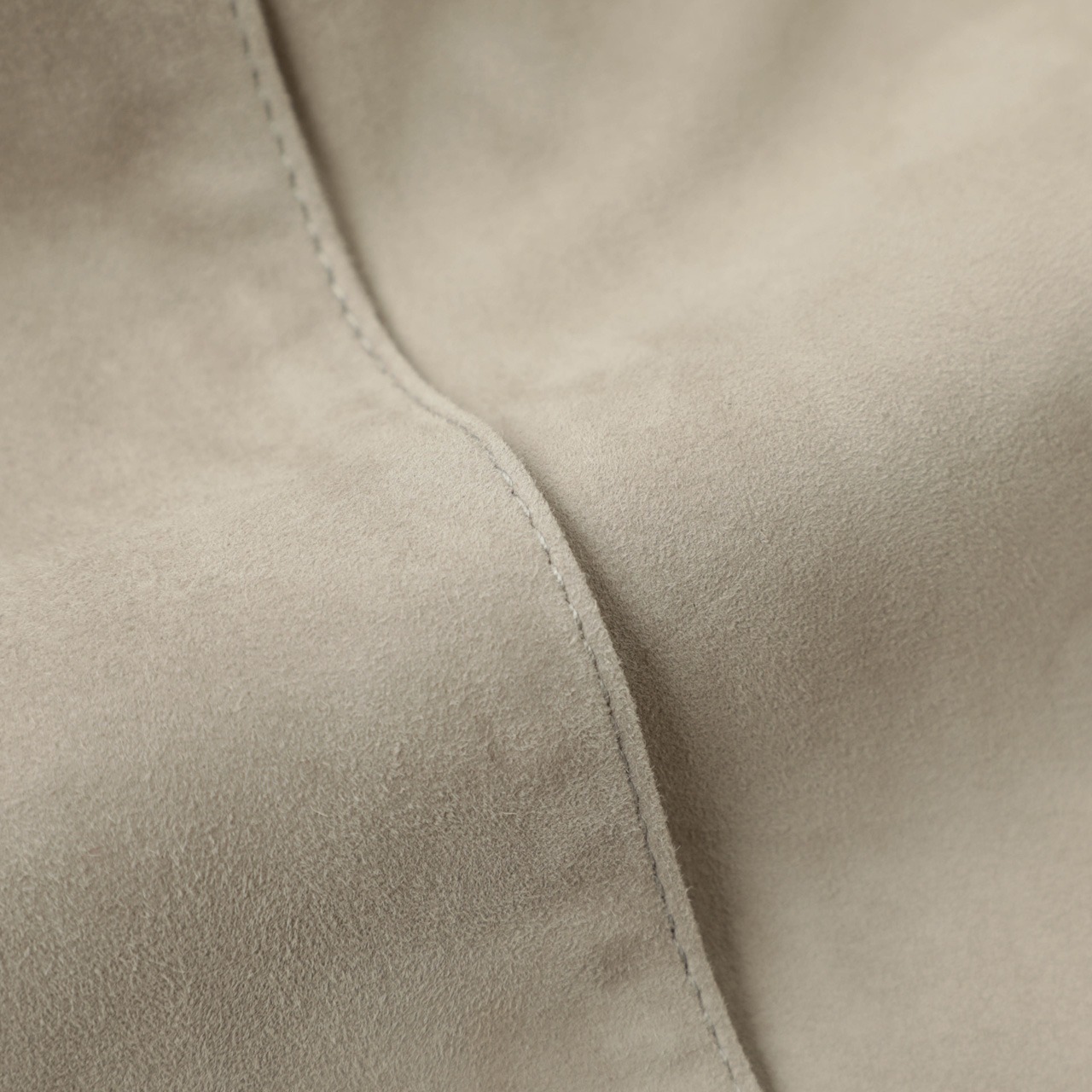 素材はラムスエード。薄手で軽量、そして圧倒的な柔らかさが魅力の素材感。フィンガーマークがついてしまう程滑らかできめ細かな革質、ベルベットのようなエレガントな艶も見逃せません。