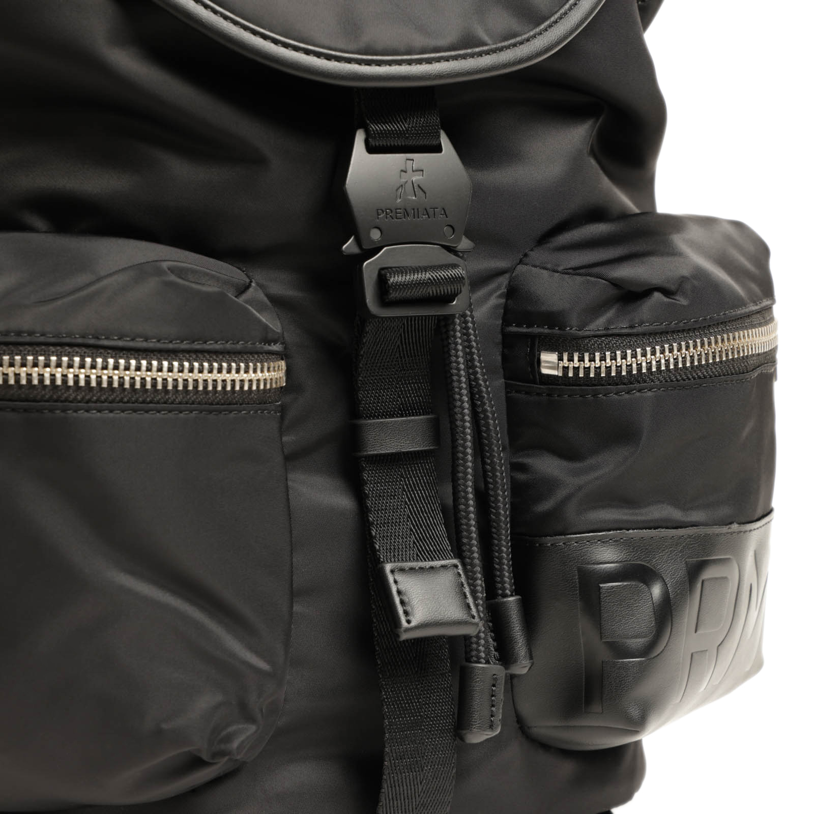 オールブラックでシックにまとめた中にPREMIATAのロゴが光るデザイン。ボディは上質なナイロンギャバジン地を使用。ほつれ防止、撥水加工を施しておりますので、デイリーにどんどん使える素材感です。