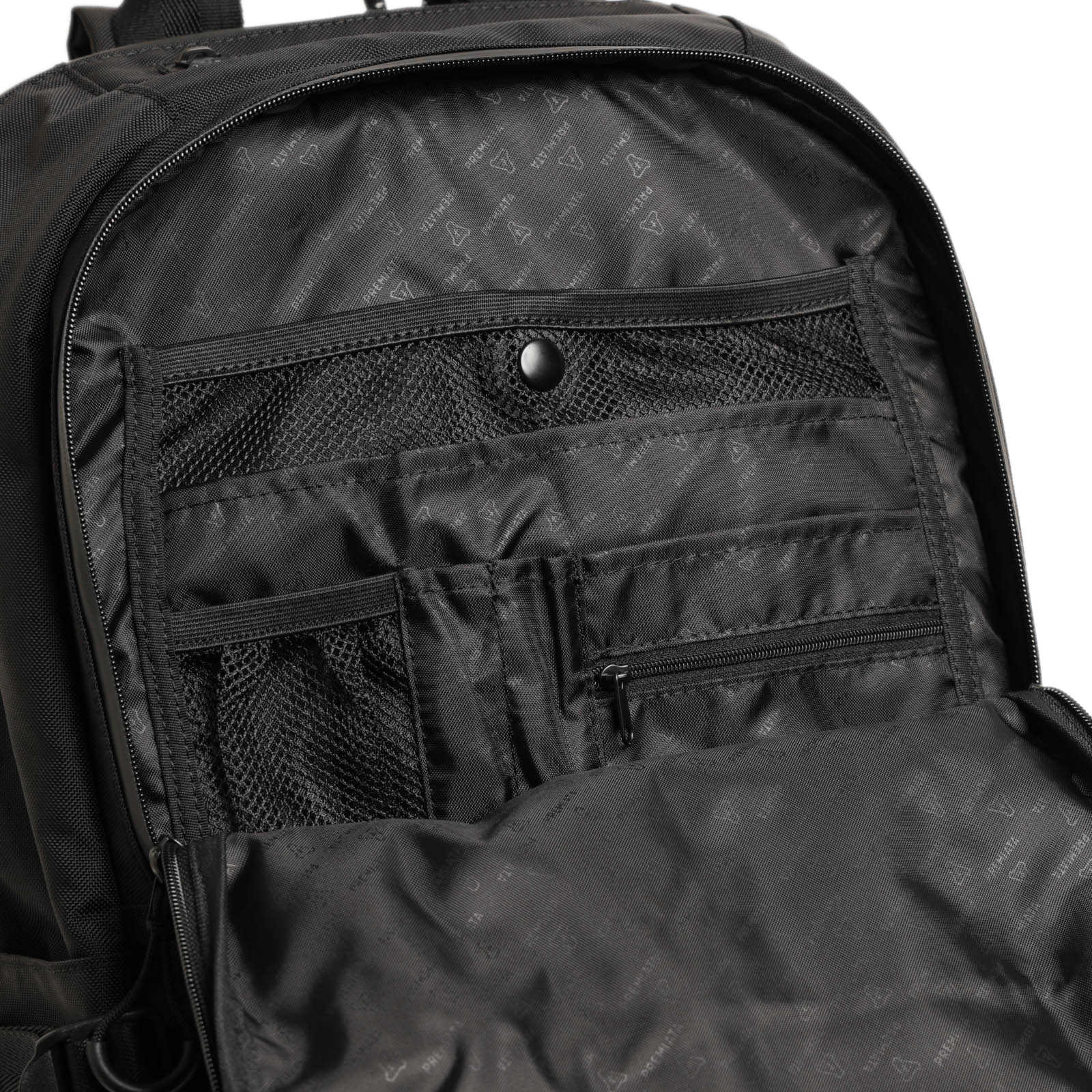 | ファスナー式開閉 ファスナーポケット×3 サイドポケット×2 【2層目】 オープンポケット×3 ファスナーポケット×1 スナップボタン式ポケット×1> ペンポケット×2 | オープンポケット×2 PC用ポケット×1 ファスナーポケット×1 |