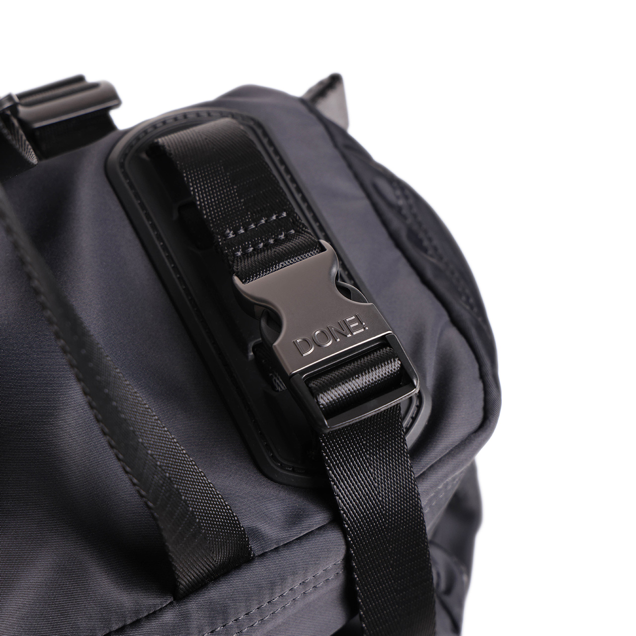DONE!では80%認証リサイクルナイロンや、生産廃棄物からアップサイクルされたレザー等、持続可能な素材を使用。
