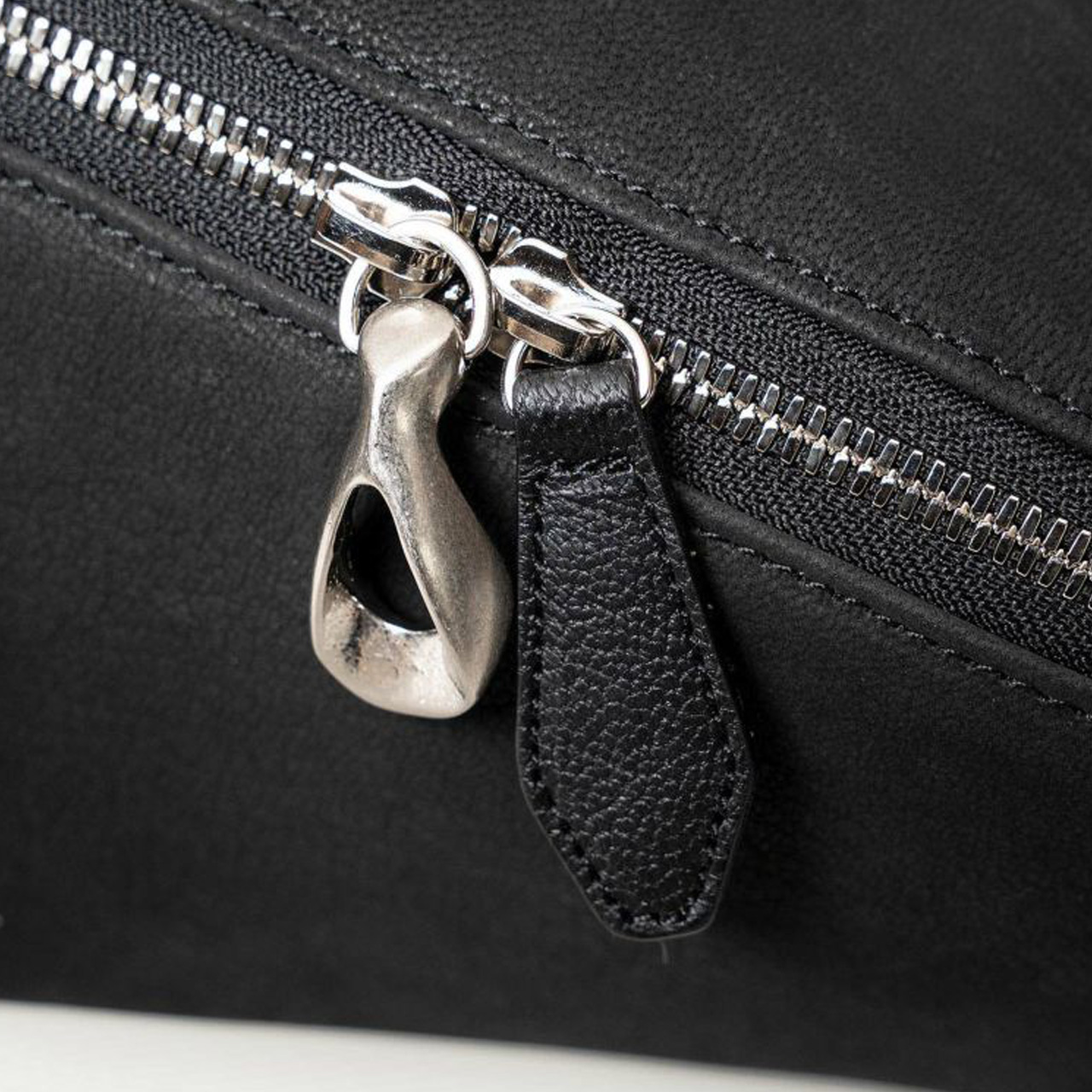 背面の開閉には、YKK最高峰のエクセラWファスナーを使用し、スマートフォン・ミニ財布・ペットボトルなどをしっかりと収納。また、内装にはファスナーポケットを装備し、鍵・パスケース・小物などを整理して持ち運べます。