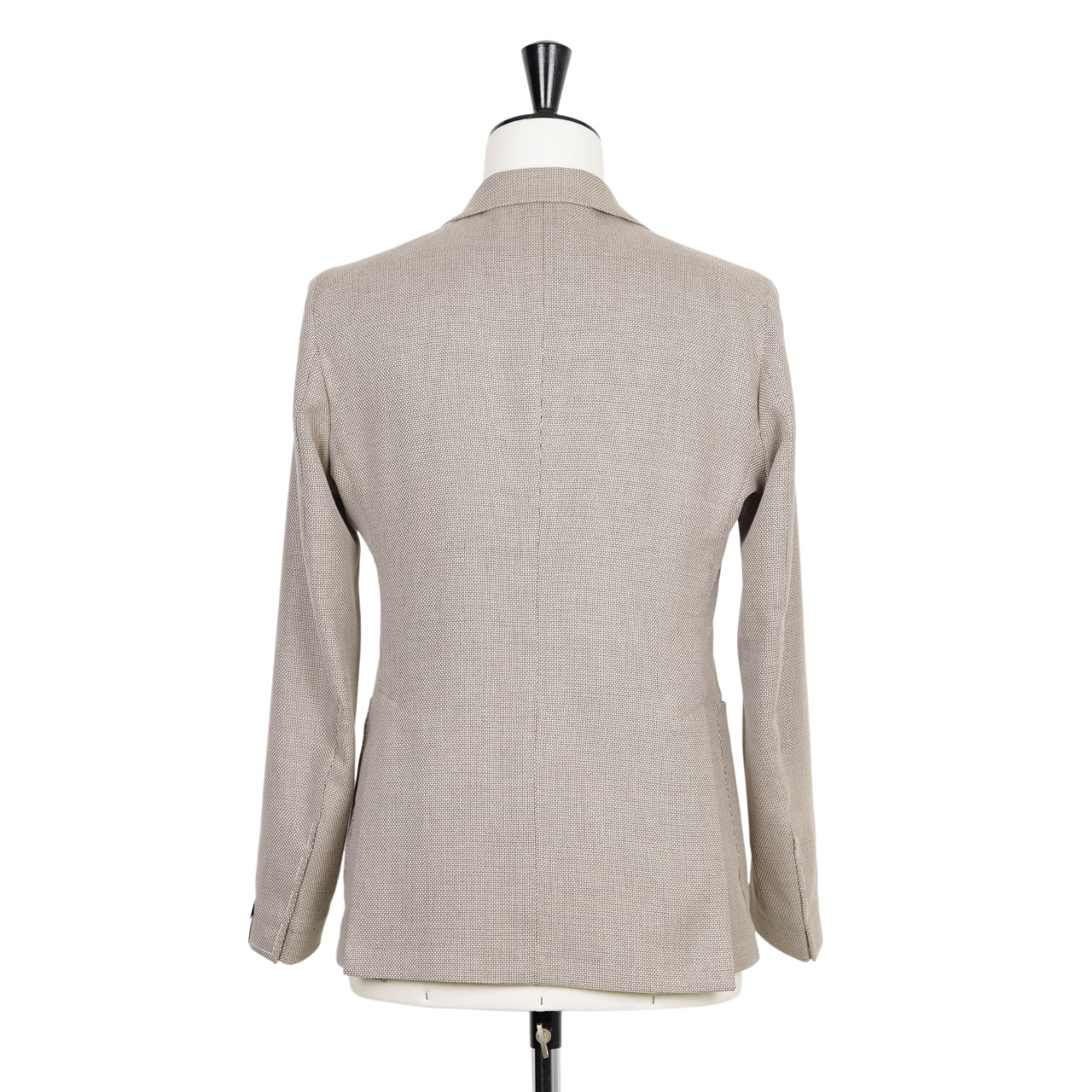 本モデルは春夏ならではのホップサック地を採用した一着。コットンをベースにウールとストレッチ素材の3者混地は程よいハリと軽さ、そしてサラッとした肌触りが特徴的。