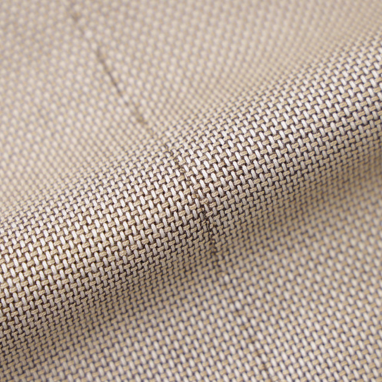 カラーはベージュでご用意。経糸にアイボリー、緯糸にベージュを合わせ、織地の間にダークブラウンの糸を挟み込むことで立体感のある表情を演出。