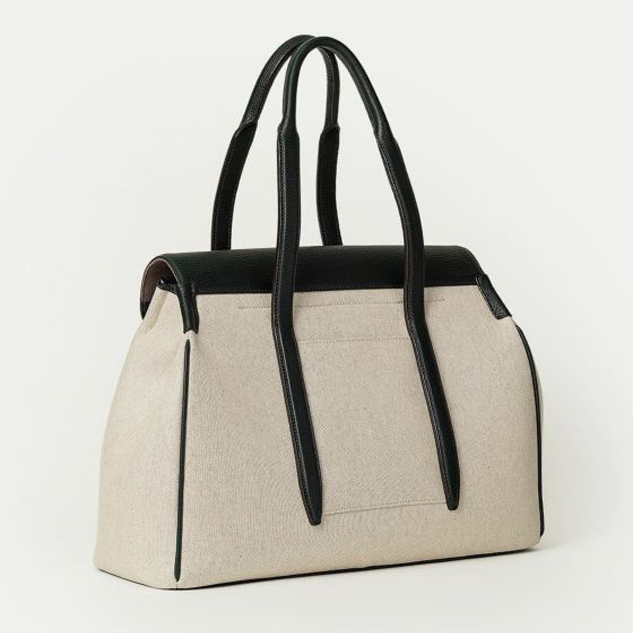 旅行・出張・ゴルフなどで少し荷物が多いときにも、上品にコーディネートして持ち歩ける、13インチのノートPCやA4の書類を収納できて手持ちハンドル仕様のフラップトートバッグ。
