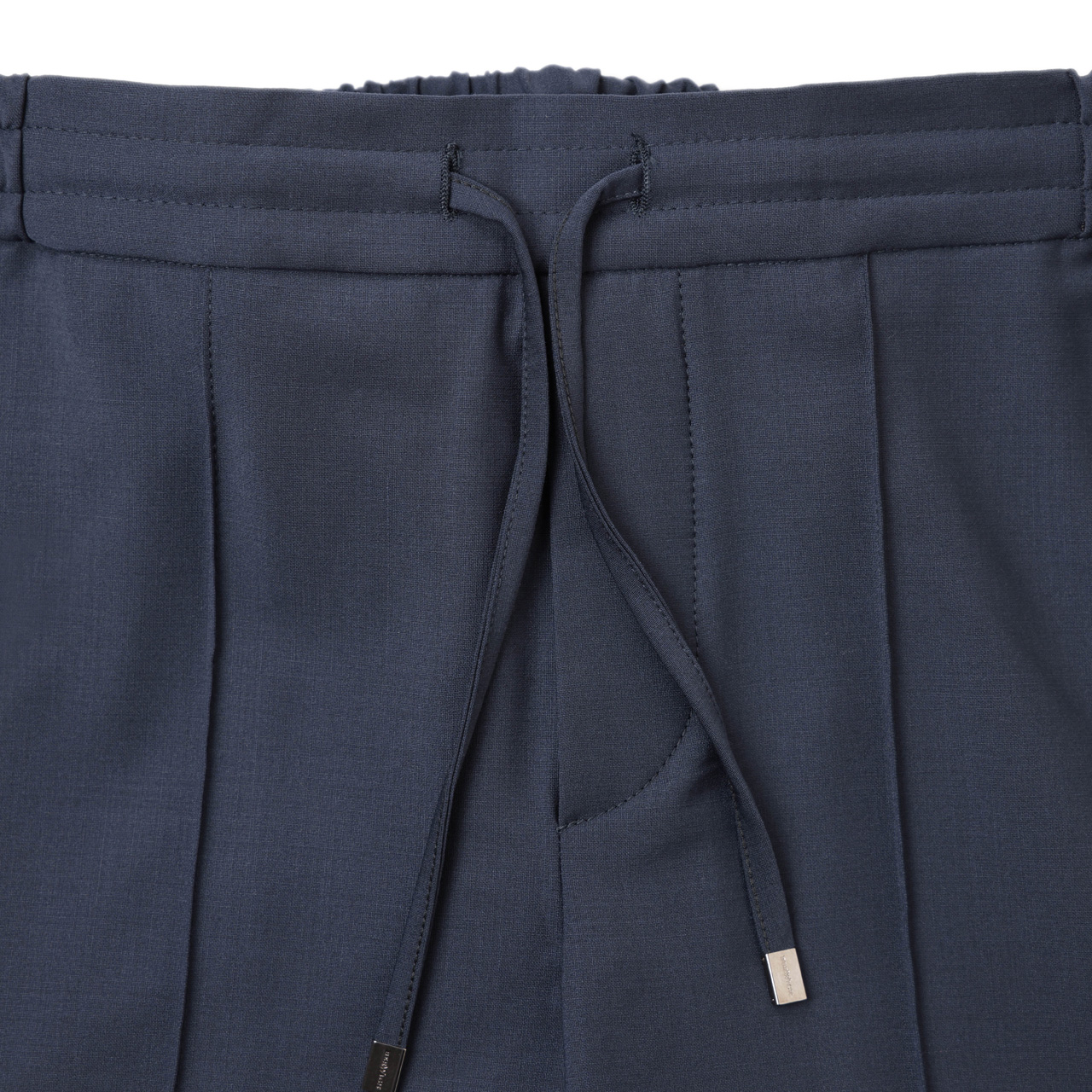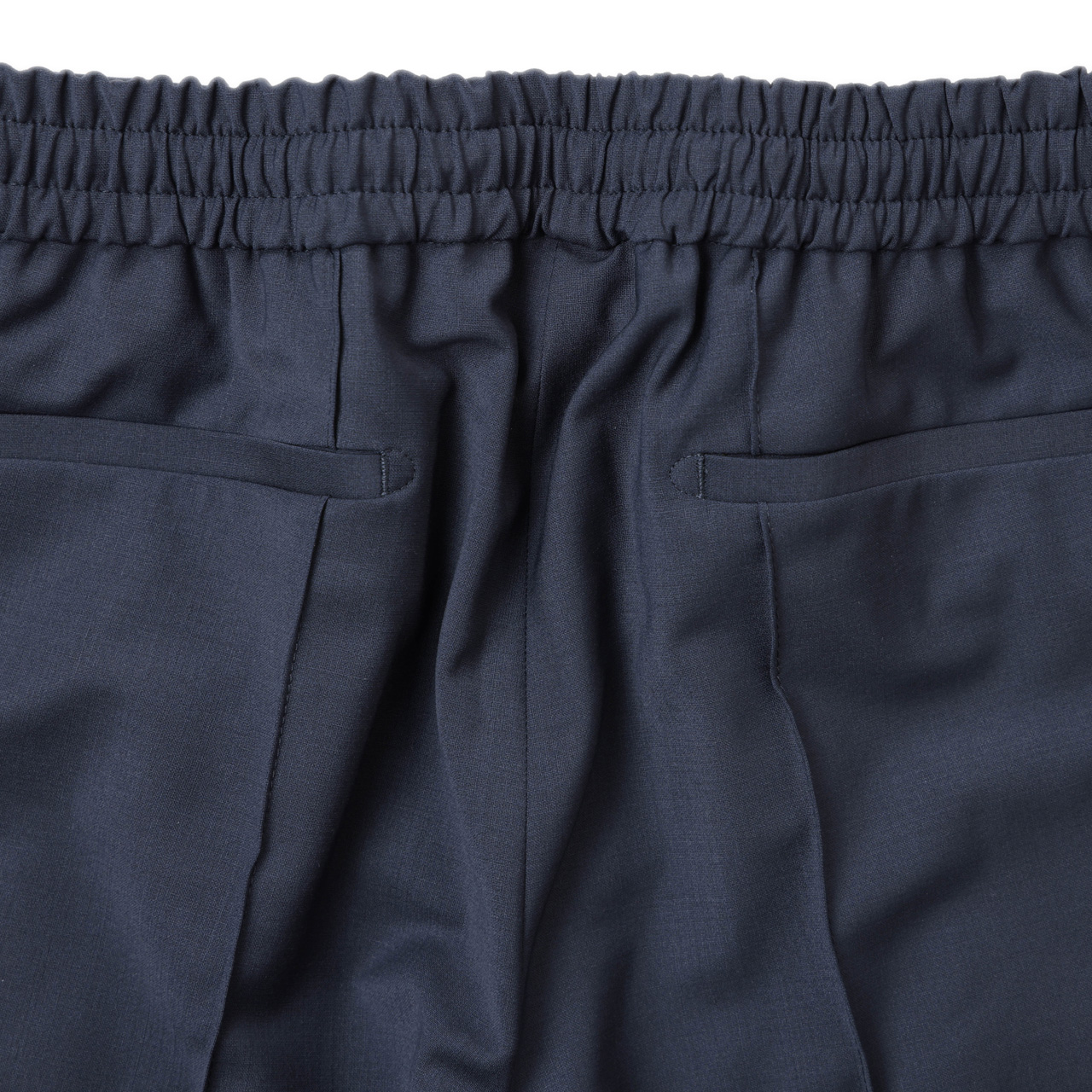 デザイン面では前回同様永久クリースを前後に入れ、しっかりした印象を損なわずに履いていただける一本に。ウエストはドローコード付シャーリング仕様。、フロントはノンファスナー仕様に。