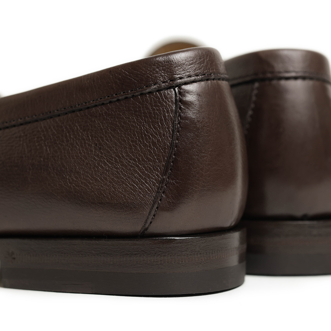 カラーはダークブラウンでご用意。通年そしてスタイルを問わずに使える定番カラー・デザインは長く足元を支えてくれるはず。