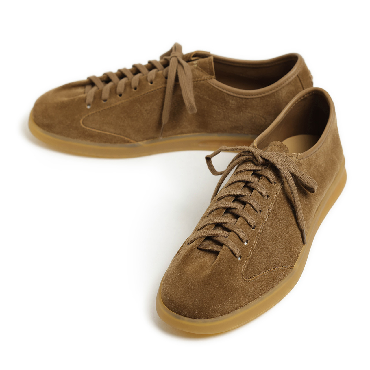 アッパーのキャメルカラーに合わせてソールもガムソールを採用。統一感のあるカラーリングでスタイリングがしやすく、ケンカのしにくい色味ですので、お手持ちのアイテムとすぐに合わせていただけます。