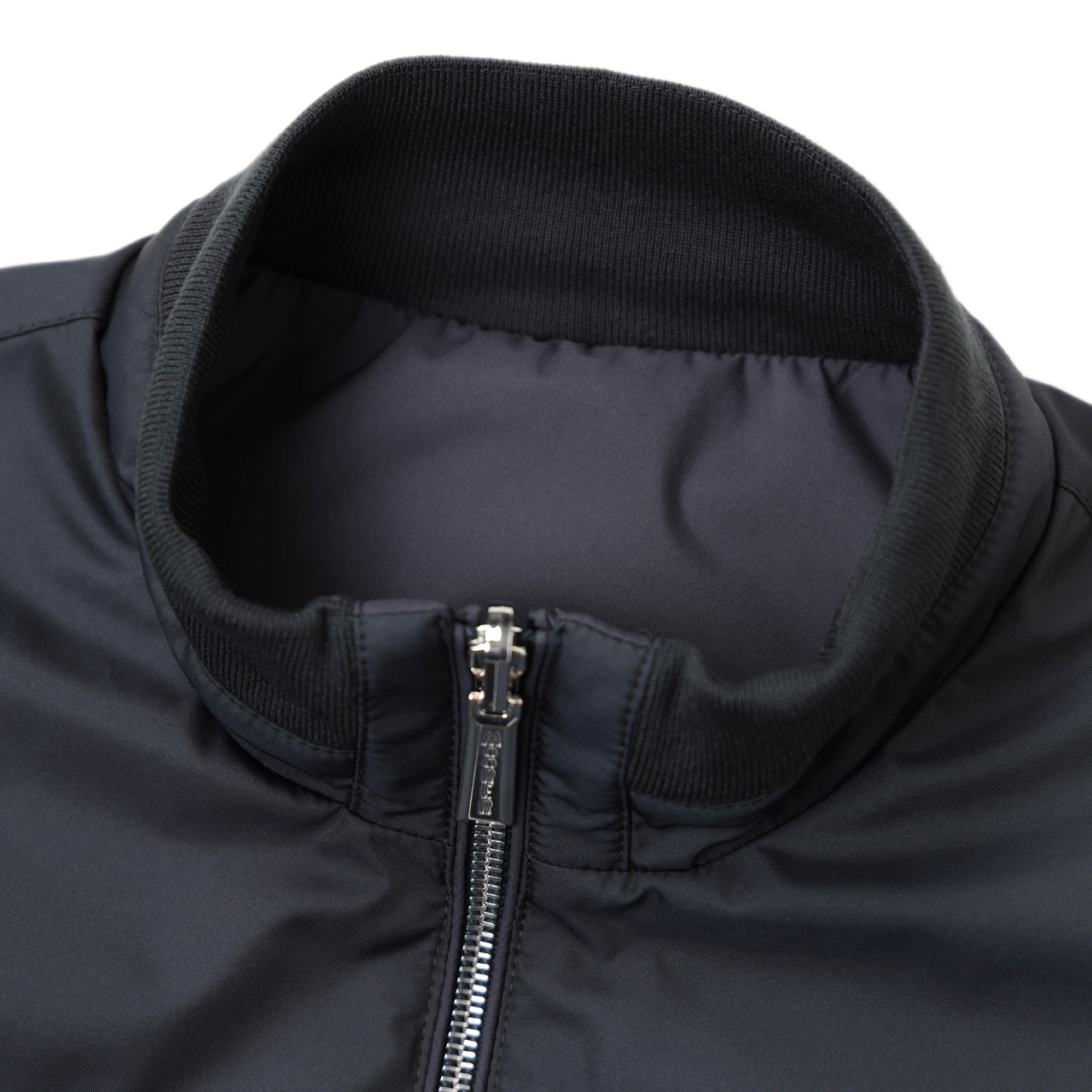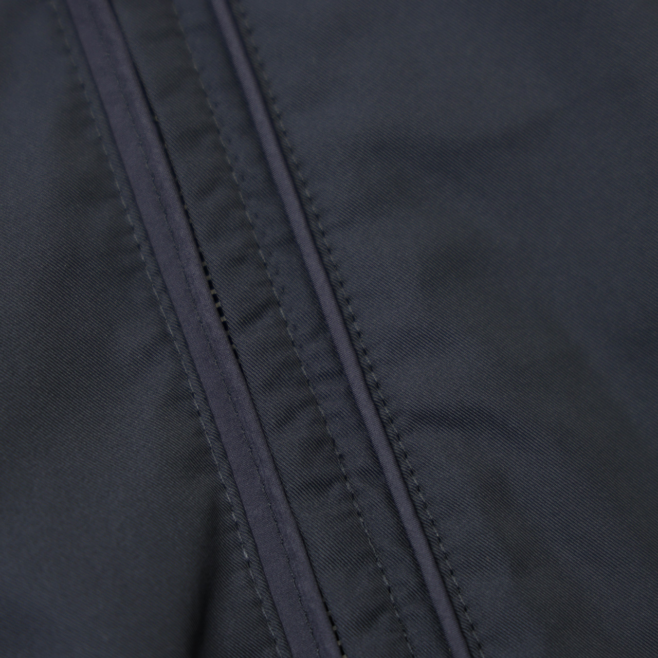 リバーシブル仕様が特徴で、どちらもマットな質感のポリエステル生地を使用。脇ポケットのデザインと襟リブのデザインが表面と裏面で若干変わります。