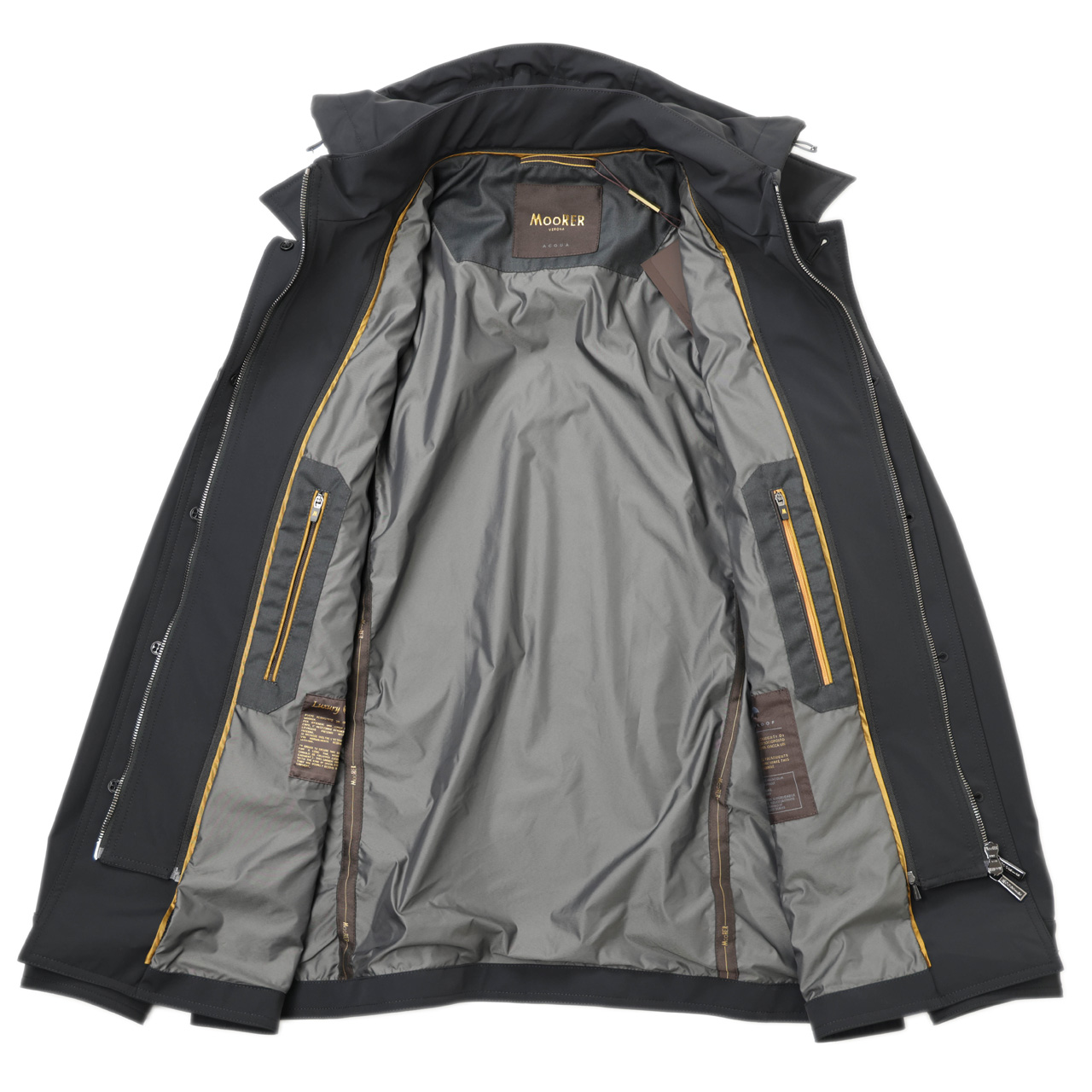 内側ジップの脇のパイピング、ジップ、ボタンは全て同社の特注パーツを使用。全てが極上の「MOORER」。モダンなブルゾンの着こなしをお楽しみください。