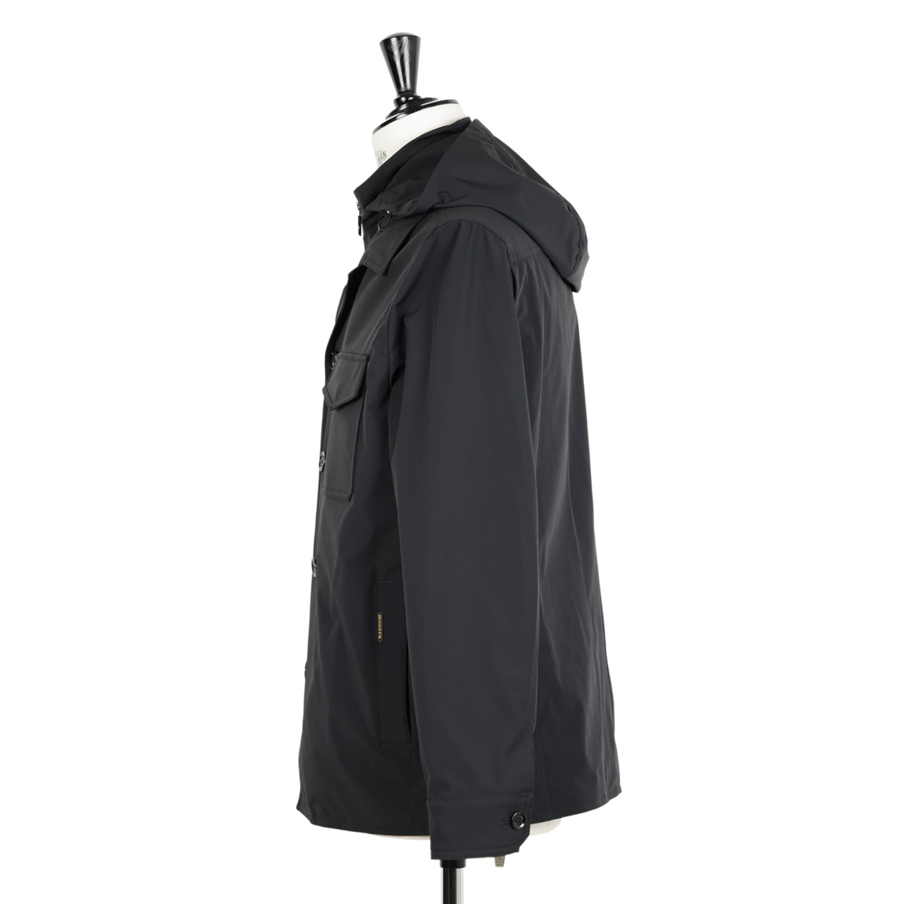 ムーレー / 撥水 ナイロン ストレッチダブルジップ ワークテイスト フーデッド ブルゾン / MAFFEI KR / ブラック