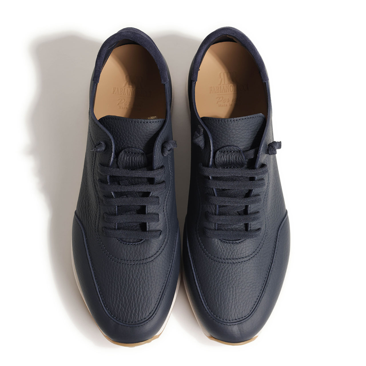 ペルノイ×ファビアノリッチ / シボ革 ローカット レースアップ ラバーシューレース スニーカー / U1697 / ネイビー
