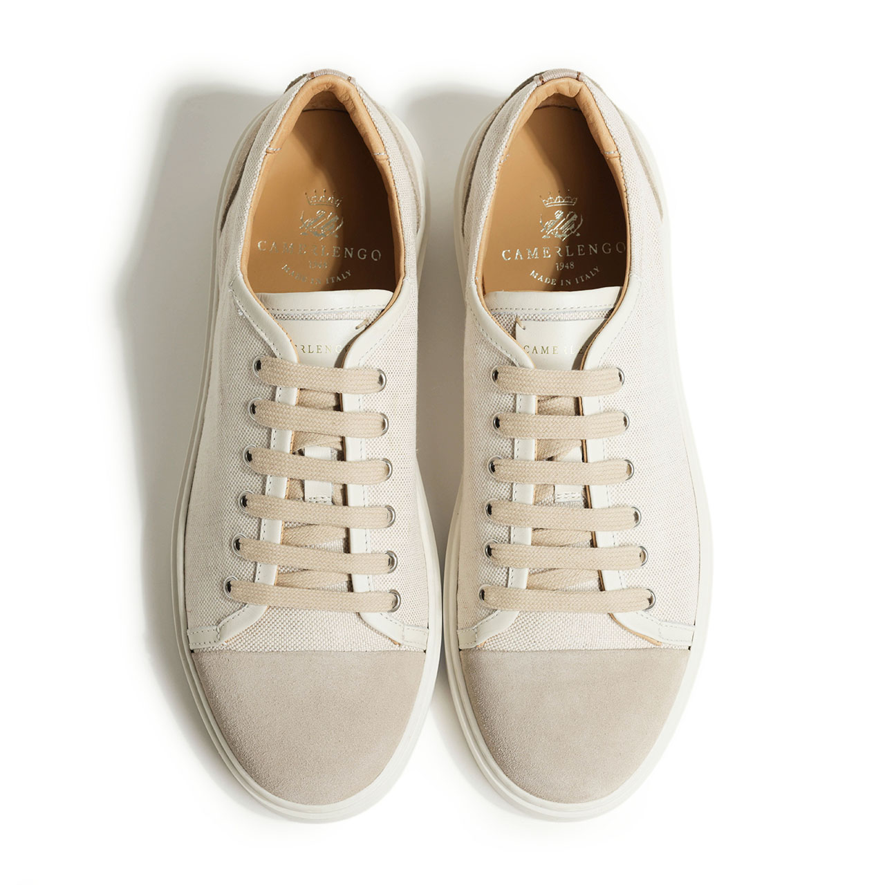 カメルレンゴ / スエード レザー レースアップ キャンバス コートシューズ / 16962 / ベージュ