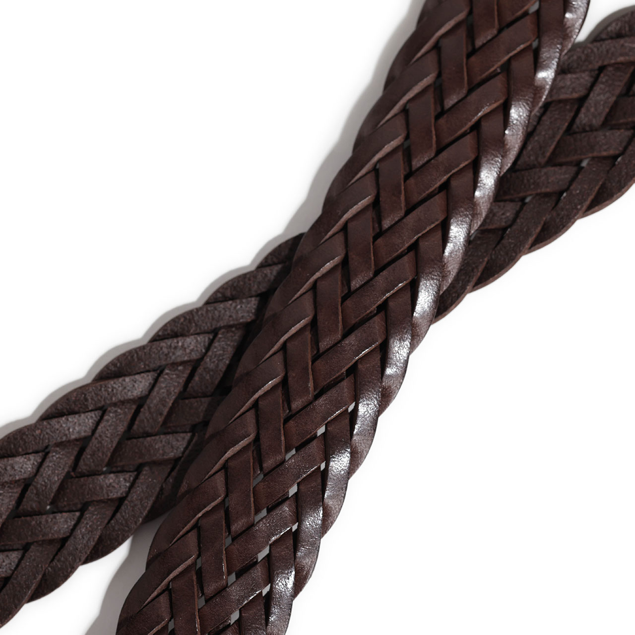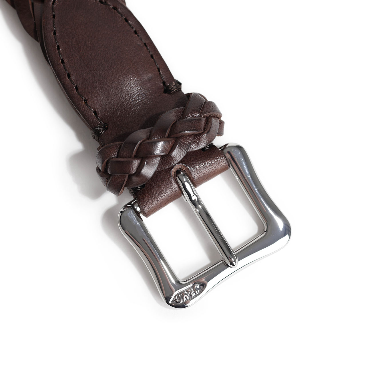 ENVELOPE BACKLE TIP ENDは細かな編み込み+剣先の金具がコーディネートにアクセントをプラスしてくれます。使用を重ねることで柔らかさ、垂れが生まれよりこなれた表情に。